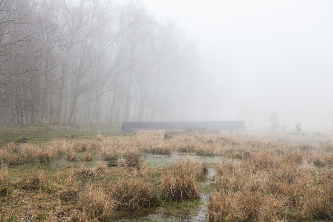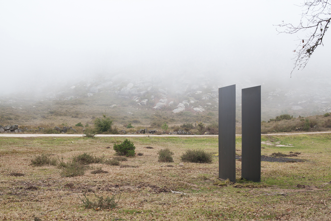 A soberana força do espaço envolvente da Porta de Lamas de Mouro nasce do poder natural e da poética dos elementos que a desenham: os cursos de água pura, os prados em manto verde, a massa dos corpos arbóreos e, finalmente, os pinheiros, a urze e a carqueja que tintam granito acima pelos penhascos que nos envolvem num horizonte muito próximo. A intervenção proposta potencia, de forma progressiva, uma interação com todos estes elementos: o sulco linear, no terreno, induz o utilizador a descer e a envolver-se com o solo, a água e o ambiente alagadiço da charca, entre musgos, seixos e juncos, proporcionando uma proximidade e uma perspetiva ímpares. Ao percorrer o sulco, o utilizador ascende de novo à superfície sendo conduzido a uma segunda peça marcada por dois elementos verticais que, através da densidade dos troncos, do som das ramagens e dos jogos de luz e sombras do vidoeiro, o atira para um trilho e o leva, finalmente, pelo maciço montanhoso. Estar no Gerês é estar em confronto com o poder da Natureza. Os autores, ao desenharem a peça, procuraram exponenciar esse confronto, não limitando o seu desenho (que é impositivo) nem a sua utilização (que é intrusiva, experimental) a uma experiência apenas contemplativa, passiva e distante, nem resumida à experiência do olhar. Todos os sentidos são postos em ação numa experiência submersiva e subversiva perante a Natureza. Também o desenho da peça retrata esse confronto: sulca, rasga, marca o solo de forma racional, reta, assertiva, antinatural. É a força e a razão do desenho e da técnica do Homem a subjugarem aquele tempo e aquele lugar. Mas a peça prevê, por outro lado, que esse mesmo tempo e lugar, em dias incertos, possa subjugar a peça (e o Homem), a sua envolvente e o acesso à montanha, inutilizando-os pela força da sua água ou o assobio do seu poder. Um dia esse tempo (essa Natureza) poderá até, para sempre, transformá-la ou levá-la destruída. Não deixou de ser irónico, aliás, o xadrez jogado entre a técnica necessária à sua construção e a força que rosnou desde cedo das entranhas do solo. Afinal, a convicção do confronto cedo se confirmou.